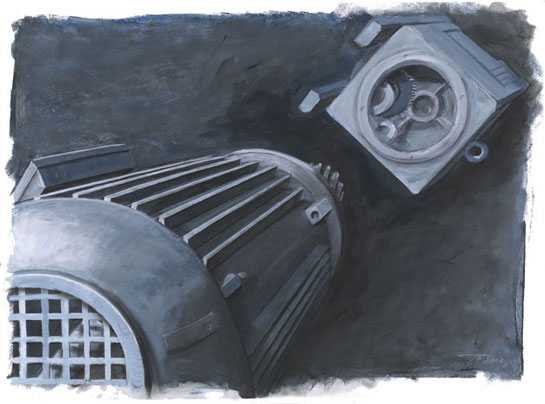 13 Kalenderblätter, die den Produktionsprozess eines Getriebemotors, von der Planung über